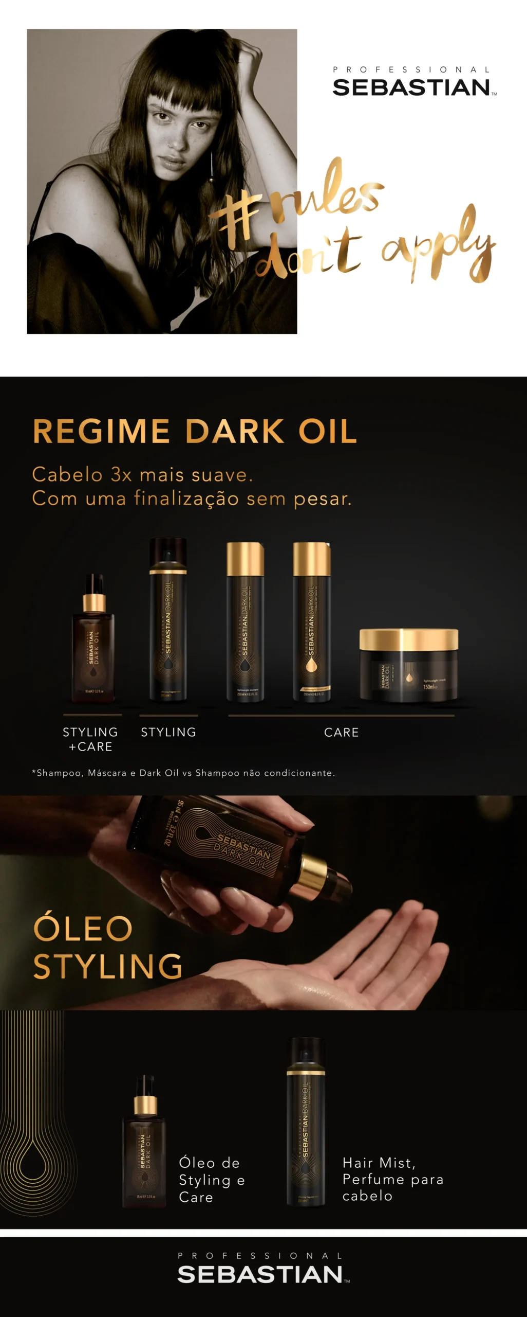 O DARK OIL SEBASTIAN 30ML é versátil e essencial para quem busca cabelos saudáveis, disciplinados e com acabamento profissional em qualquer ocasião.