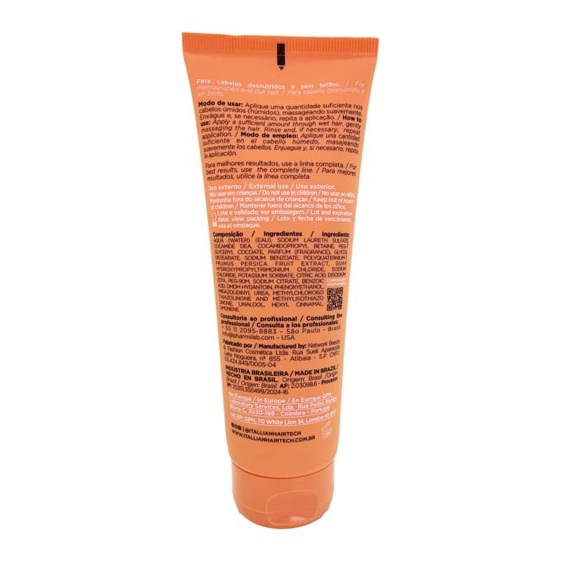 Formulada com ativos altamente nutritivos, como Manteiga de Manga, Éster Cetílico de Karité e Extrato de Pêssego, a ITALLIAN MÁSCARA NUTRIÇÃO 200g promove uma nutrição intensiva que melhora visivelmente a textura do cabelo, reduz a quebra e proporciona brilho natural e maciez imediata. Sua textura cremosa penetra profundamente na fibra capilar, restaurando a camada protetora natural dos fios e promovendo um cabelo mais forte, maleável e saudável.