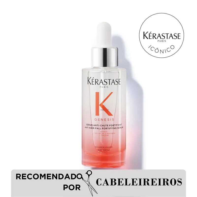 KERASTASE GENESIS SERUM 90ML é um tratamento intensivo desenvolvido para combater a queda capilar causada por quebra e enfraquecimento da fibra. Ideal para todos os tipos de cabelos, especialmente os que sofrem com estresse físico ou emocional, excesso de química, ferramentas térmicas e mudanças hormonais, este sérum proporciona uma abordagem eficaz e científica para fortalecer os fios desde a raiz e reduzir significativamente a queda.
