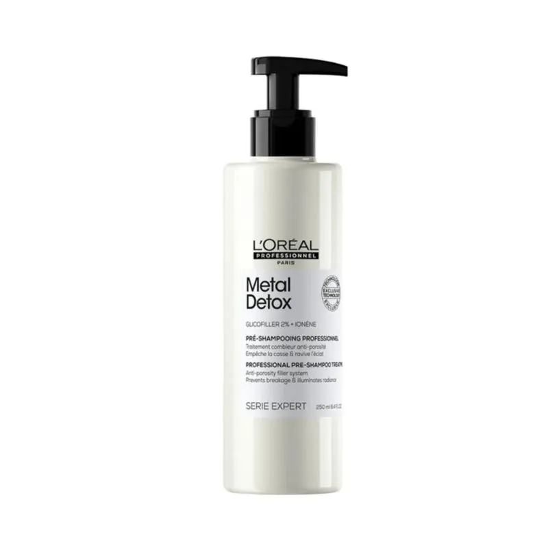 LOREAL ABSOLUT REPAIR METAL DETOX PRÉ TRAT, da linha L’Oréal Professionnel Serie Expert, é uma inovação no cuidado capilar profundo. Desenvolvido especialmente para cabelos frágeis e danificados, ele age antes do shampoo para oferecer uma proteção intensa contra quebras, reduzir a porosidade da fibra e preparar os fios para uma limpeza mais eficaz. Este pré-tratamento representa uma revolução na rotina capilar, com benefícios poderosos já na primeira aplicação.