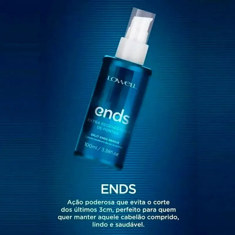 O LOWELL ENDS REGENERADOR 100ML é um sérum de reparação com efeito extra regenerador, desenvolvido para reparar e prevenir pontas duplas e danificadas, selar instantaneamente os fios e controlar o frizz com brilho intenso e toque acetinado, sem pesar. Ideal para quem deseja manter os cabelos longos, saudáveis e livres de quebra nas pontas.