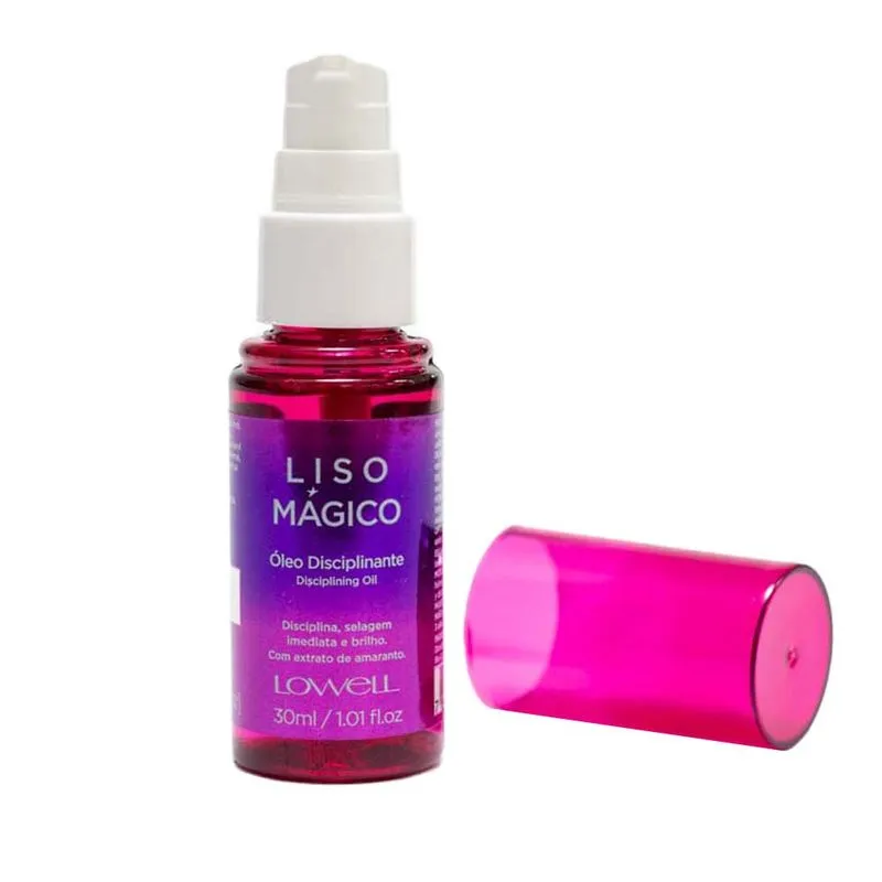 O LOWELL ÓLEO LISO MAGICO 30ML é um óleo capilar multifuncional e de alto desempenho, indicado para disciplinar os fios, eliminar o frizz e prolongar o efeito liso, mesmo em ambientes com umidade. Sua fórmula exclusiva, enriquecida com Óleo de Amaranto, promove selagem imediata, toque sedoso e brilho tridimensional — o famoso toque 3D.
