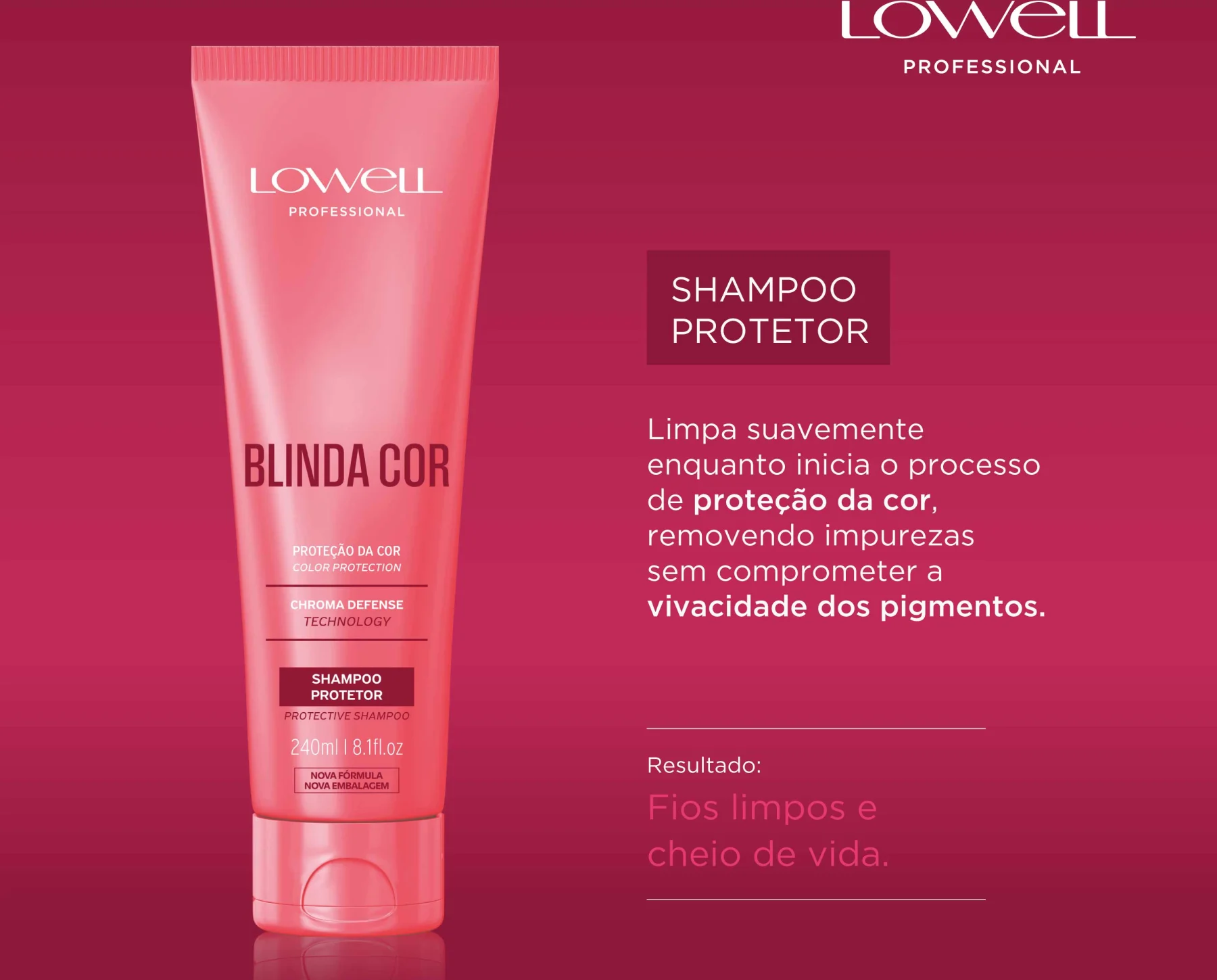 Chroma Defense Technology: tecnologia exclusiva que blinda os pigmentos no interior do fio, mantendo a cor intensa por mais tempo.