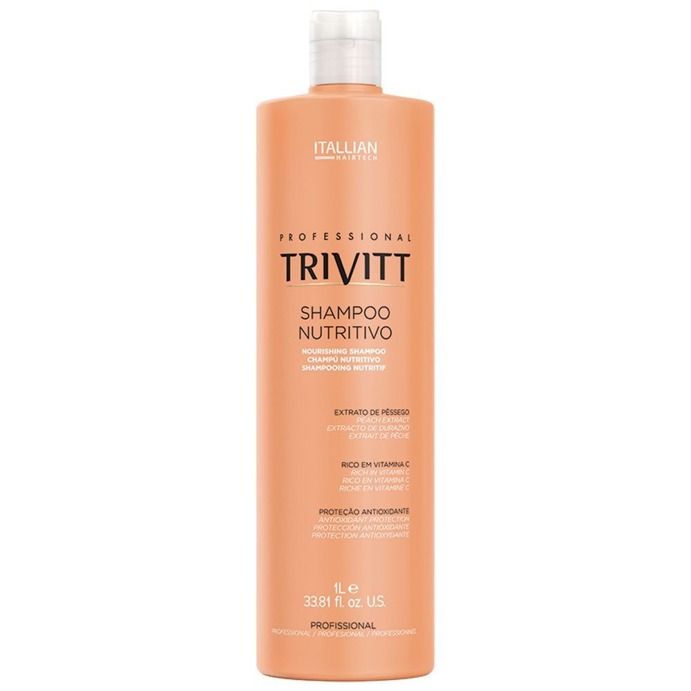 Modo de uso: Aplique o TRIVITT SHAMPOO NUTRITIVO 1 LITRO sobre os cabelos úmidos, massageando suavemente o couro cabeludo até formar uma espuma rica. Enxágue bem e, se necessário, repita a aplicação para uma limpeza mais profunda. Para melhores resultados, finalize com os produtos da linha Trivitt.