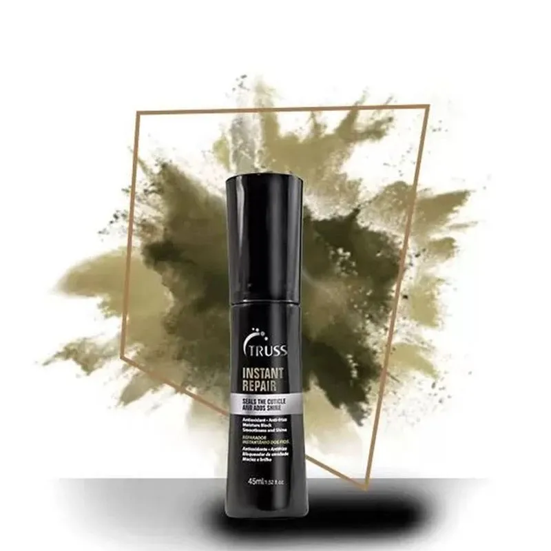 TRUSS INSTANT REPAIR 45ML é um óleo capilar finalizador multifuncional, desenvolvido para restaurar instantaneamente a saúde e a vitalidade dos cabelos danificados. Com uma combinação poderosa de óleos naturais e ativos de alta tecnologia, ele proporciona brilho intenso, toque sedoso e efeito antifrizz imediato, além de criar uma barreira protetora contra a umidade, o calor e as agressões externas.