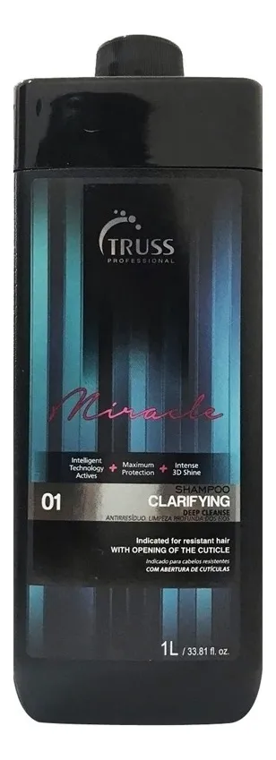 Dica Profissional: Após o uso do produto TRUSS SHAMPOO CLARIFYING 1 LITRO, utilize uma máscara de tratamento ou condicionador adequado para selar as cutículas e repor a hidratação natural dos fios.