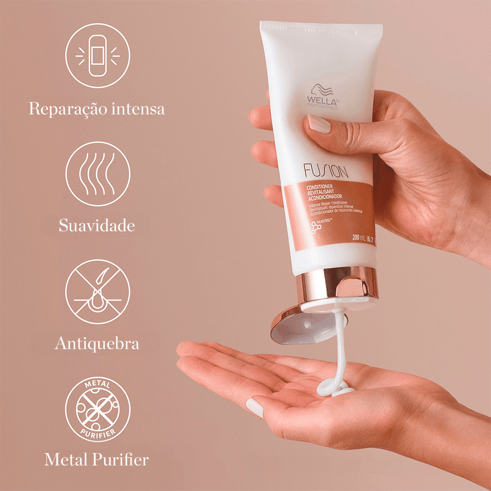 Transforme seus fios danificados com o poder reconstrutor do WELLA CONDICIONADOR FUSION 200G e devolva aos seus cabelos força, brilho e vitalidade desde a primeira aplicação.