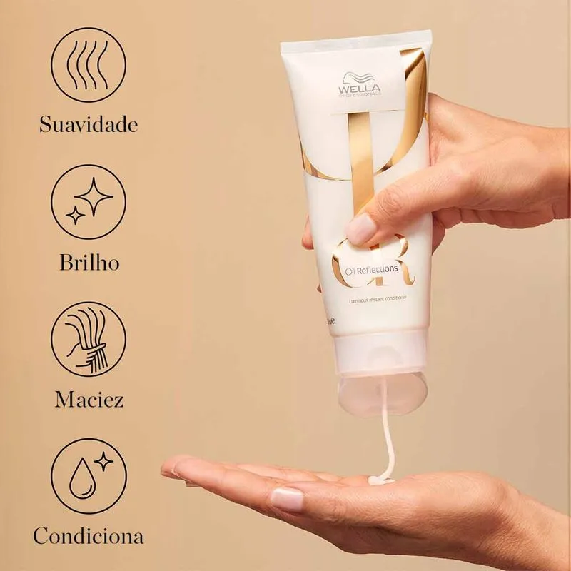 Para melhores resultados, utilize em conjunto com os demais produtos da linha Wella Oil Reflections, como a máscara e o óleo capilar.