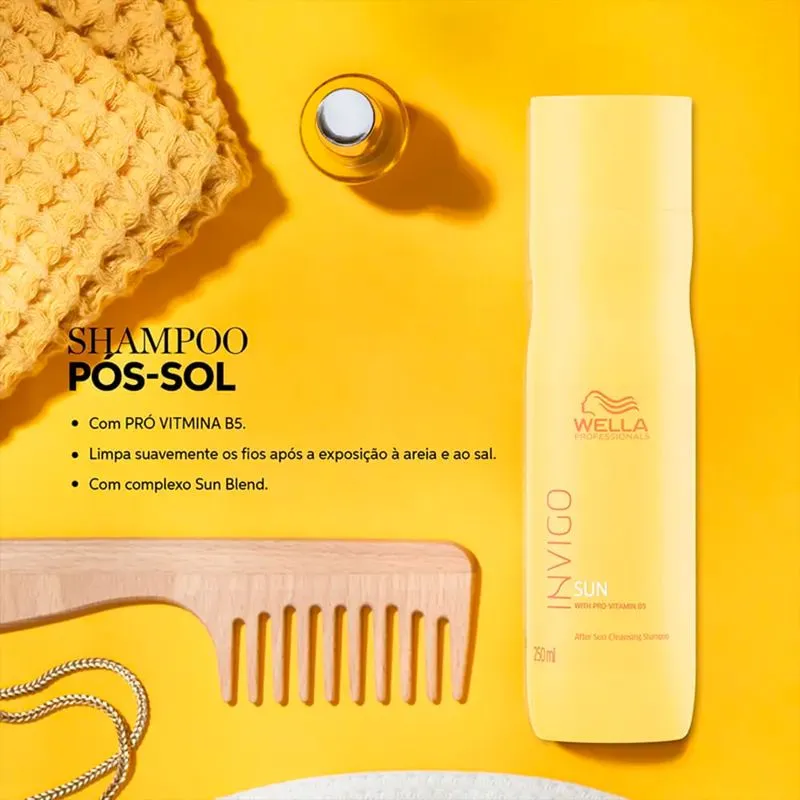 WELLA SHAMPOO INVIGO SUN 250G é o shampoo ideal para cuidar dos cabelos expostos ao sol, água do mar e piscina. Com fórmula suave e eficaz, ele remove resíduos de sal, cloro e protetores solares, devolvendo maciez, brilho e vitalidade aos fios.